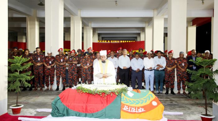 টঙ্গীতে কেমিক্যালের আগুন নির্বাপণে অগ্নিদগ্ধ হয়ে হাসপাতালে মৃত্যুবরণকারী ফায়ারফাইটার শামীম আহমেদ-এর জানাজা সম্পন্ন হয়েছে। আজ ২৩ সেপ্টেম্বর রাত ৮ টায় সময় ফায়ার সার্ভিস ও সিভিল ডিফেন্স অধিদপ্তর প্রাঙ্গণে এ জানাজা
