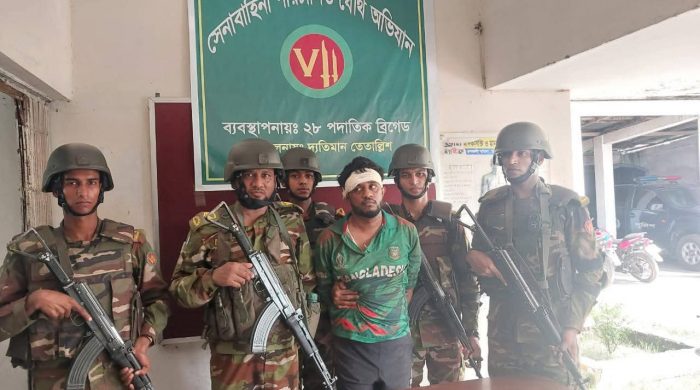 বিকাশ ও কনফেকশনারির দোকানে গিয়ে ব্যবসায়ীকে পিস্তল ঠেকিয়ে ছিনতাইয়ের চেষ্টাকালে আরিফ হোসেন (৩৫) নামের এক যুবককে আটক করে গণধোলাই দিয়েছে স্থানীয় জনতা। খবর পেয়ে থানা পুলিশ ও সেনাবাহিনীর সদস্যরা ঘটনাস্থলে