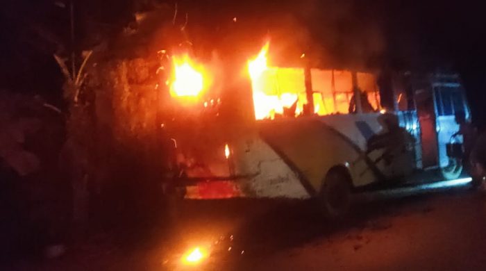 বরিশাল সদর উপজেলার দিনারের পুল নামক এলাকায় একটি যাত্রীবাহী বাসে রহস্যজনকভাবে আগুন লাগার ঘটনা ঘটেছে। সোমবার (১৭ নভেম্বর) দিবাগত রাত দুইটার দিকে চরকাউয়া-গোমা আঞ্চলিক সড়কের পাশে রাখা ওই বাসটিতে আগুন